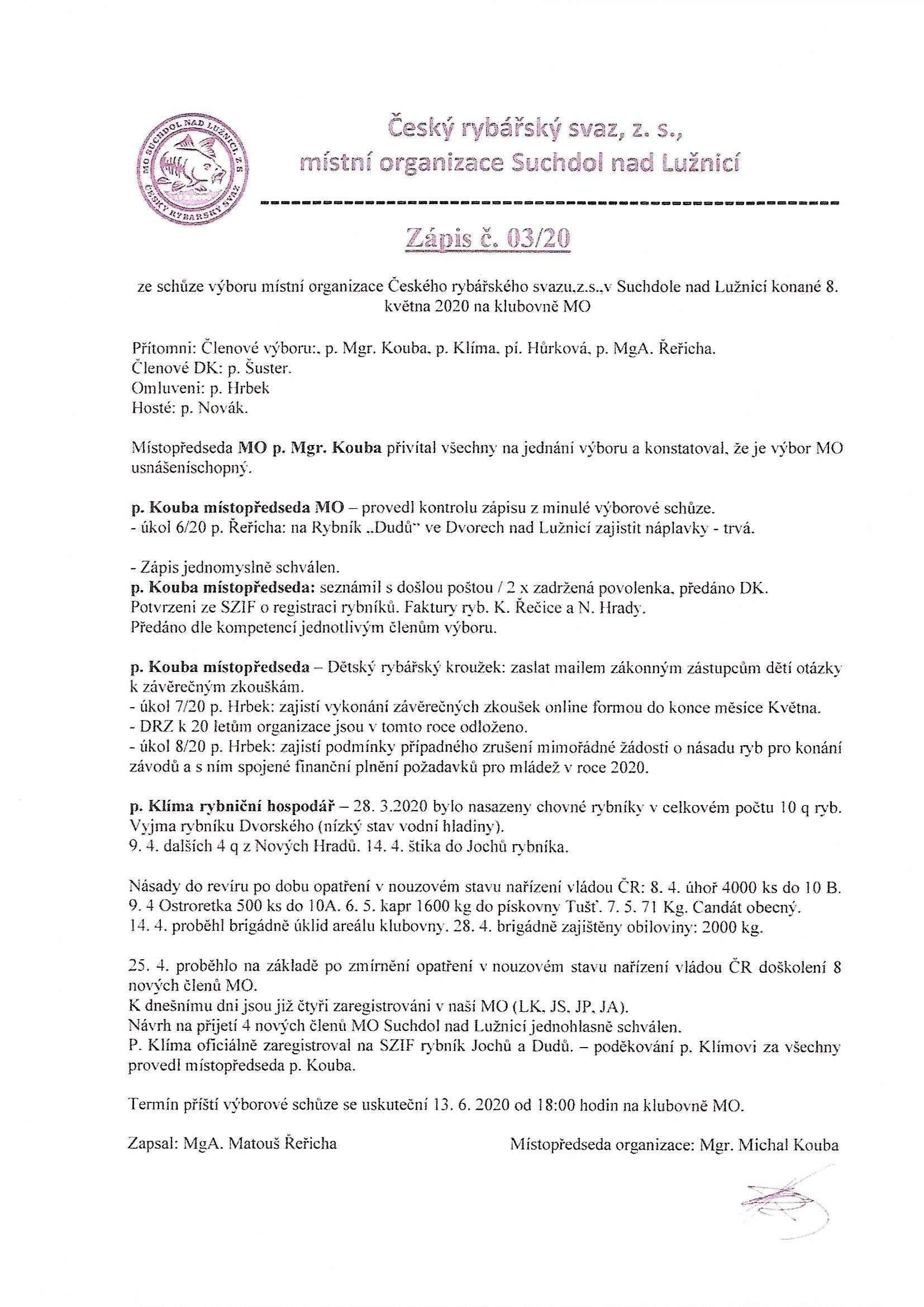 výboru místní organizace Českého rybářského svazu,z.s.,v Suchdole nad Lužnicí